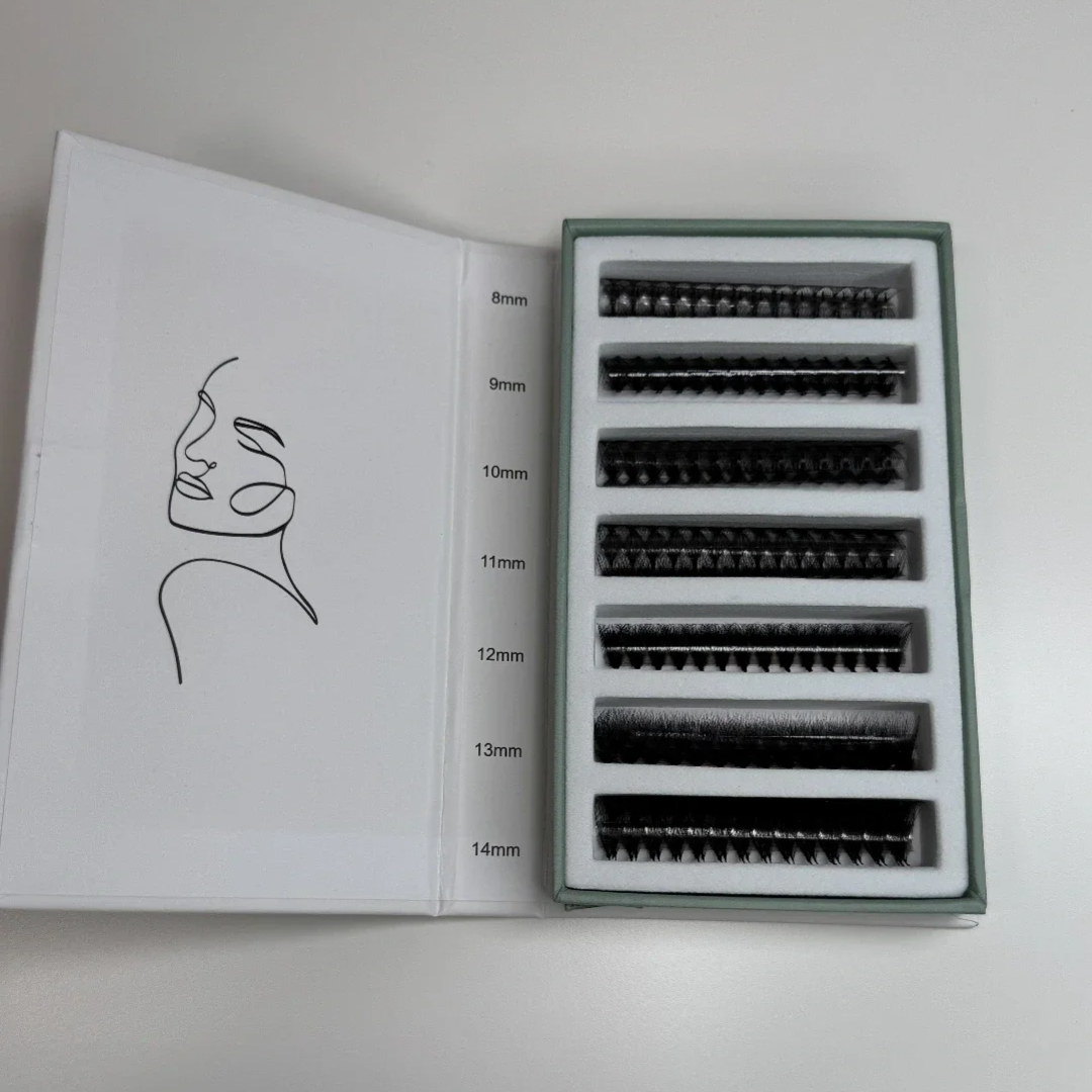 Jede Mixbox enthält 1.000 Fächer in gemischten Längen von 8–14 mm – ideal für individuell angepasste, voluminöse Lash Stylings.