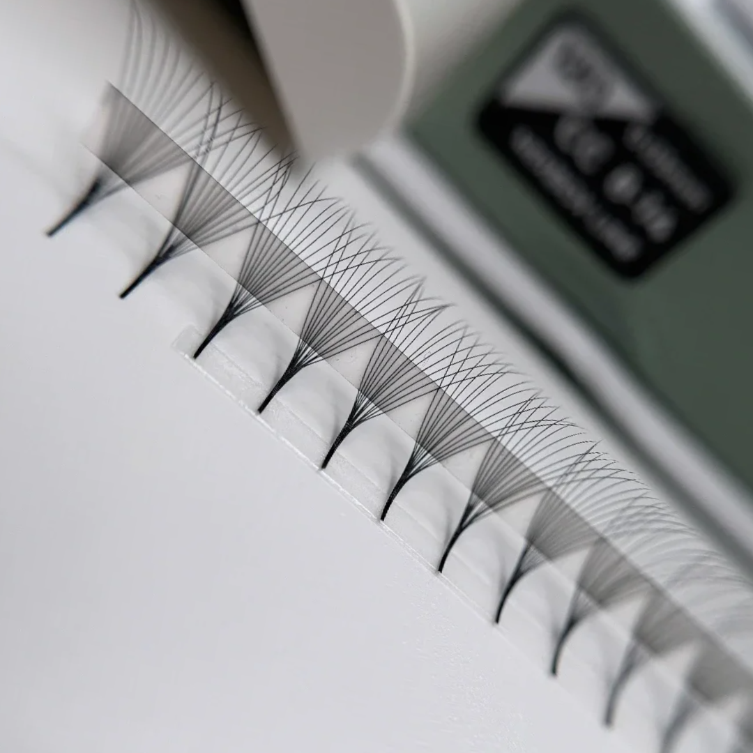 Unsere 12D Volumen-Wimpern sind die perfekte Wahl für Lash Artists, die das Maximum an Dichte und Ausdruck wünschen. Jeder Fächer besteht aus zwölf ultrafeinen, sorgfältig angeordneten Einzelwimpern – für einen intensiven, voluminösen und dennoch eleganten Effekt. Die Fächer sind auf praktischen Klebestreifen vormontiert, was eine schnelle und professionelle Applikation ermöglicht.