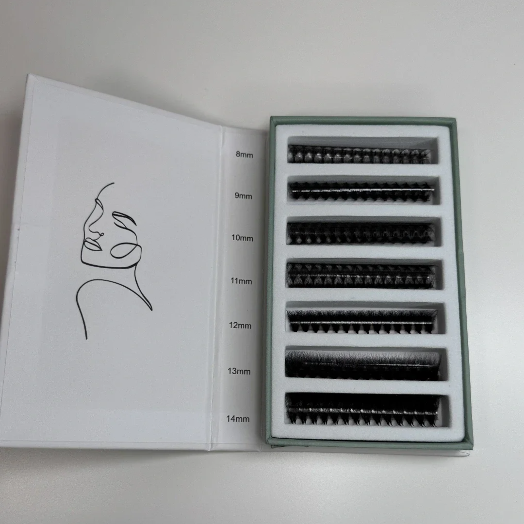 Unsere 12D Volumen-Wimpern sind die perfekte Wahl für Lash Artists, die das Maximum an Dichte und Ausdruck wünschen. Jeder Fächer besteht aus zwölf ultrafeinen, sorgfältig angeordneten Einzelwimpern – für einen intensiven, voluminösen und dennoch eleganten Effekt. Die Fächer sind auf praktischen Klebestreifen vormontiert, was eine schnelle und professionelle Applikation ermöglicht.