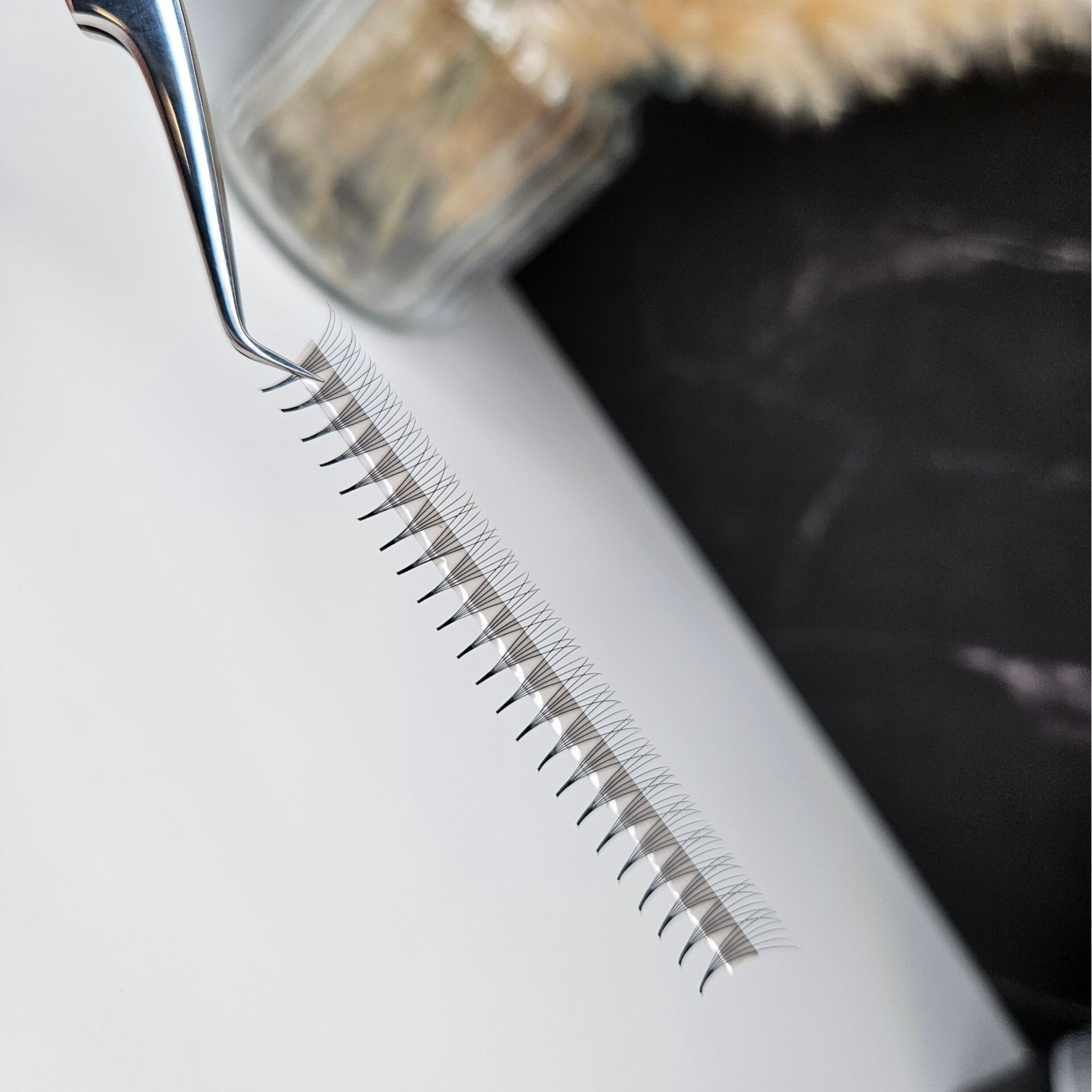 ✔ Inhalt: 1.000 fertige 6D Wimpernfächer auf Klebestreifen