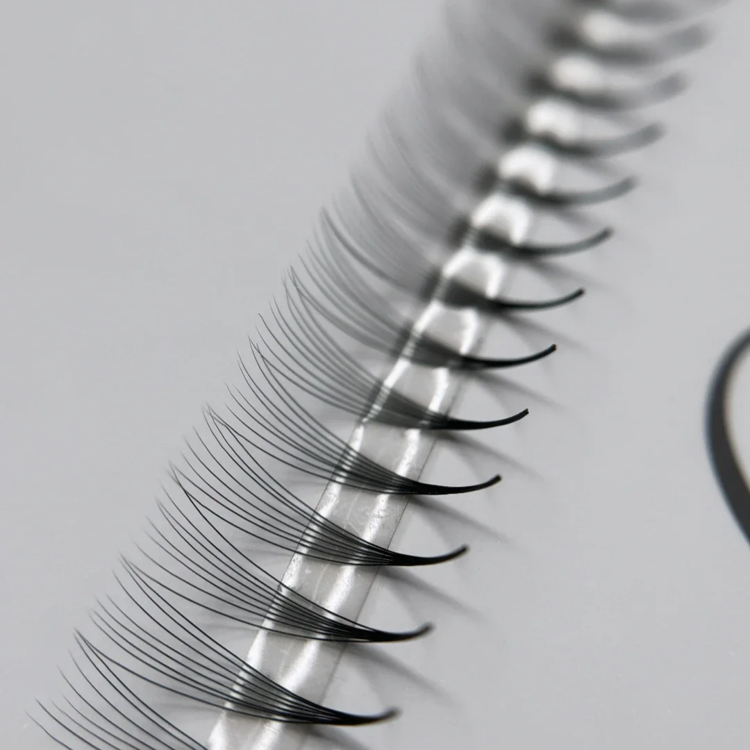 - 1.000 vorgefertigte 8D Wimpernfächer auf Klebestreifen.